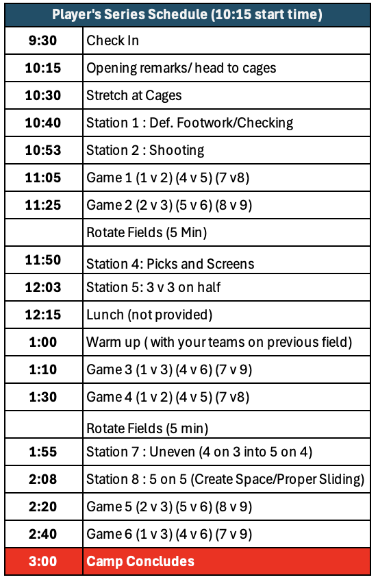 Player Check-In: 9:30 AM-10:05 AM