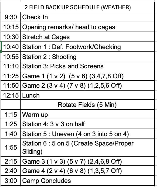Contingency Field Schedule if Field 3 grass is unplayable.